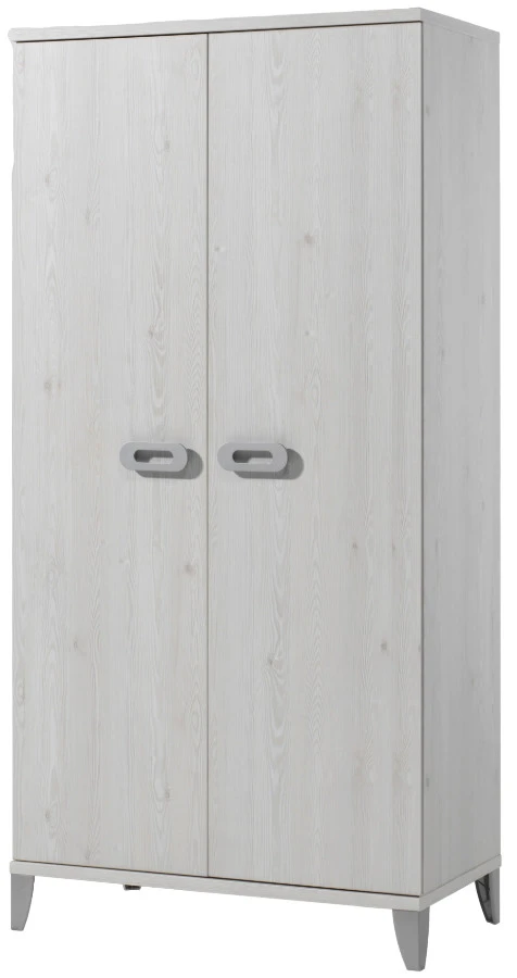 Deze kast heeft 2 openslaande deuren van lichte houtlook met zilveren grepen. De binnenkant bestaat uit een groot hanggedeelte en een aantal planken. 2-Deurskast Liv is goed te combineren met de andere meubels uit deze collectie: een meegroei ledikant, nachtkastje en commode. Ook verkrijgbaar als 3-delige set.Â