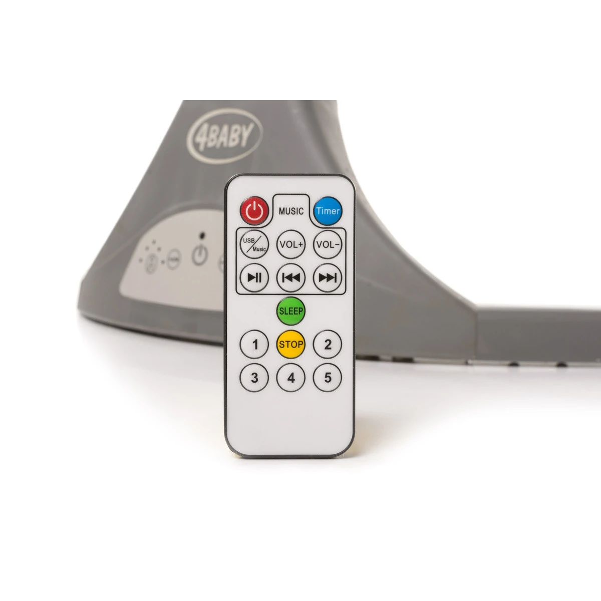 Om je kleine helemaal tot rust te laten komen speelt de 4Baby Rock ’n Relax ook nog eens muziek af; je hebt de keuze uit maar liefst 12 melodieën met aanpasbaar volume! Ook heeft de swing een USB-poort waardoor je je eigen muziek af kan laten spelen! Daarnaast bevat hij een timer waarbij je 3 verschillende tijden kunt instellen voor het automatisch afsluiten van de wipstoel.