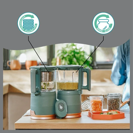 De Glazen Nutribaby bestaat voor 50% uit glas, en 20% uit roestvrij staal. Zo maak je met de aanschaf van deze foodprocessor een gezonde, duurzame en milieuvriendelijke keuze.Â