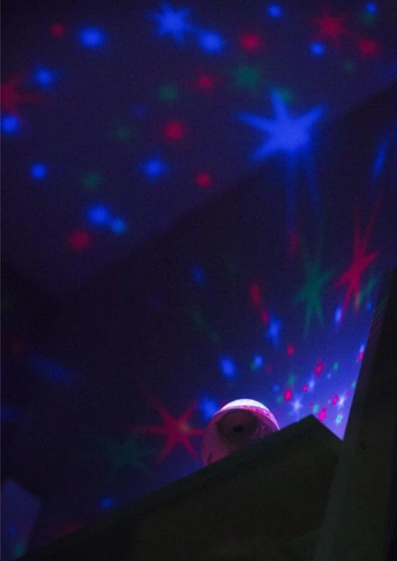 Deze superleuke projector van Badabulle zorgt ervoor dat je kleine heerlijk weg kan dromen! Hij bevat 9 zachte slaapliedjes en projecteert kleurrijke sterren op het plafond! Dankzij de meegeleverde kabel is het mogelijk om een MP3-speler aan te sluiten, zodat je ook je eigen muziek kan afspelen.