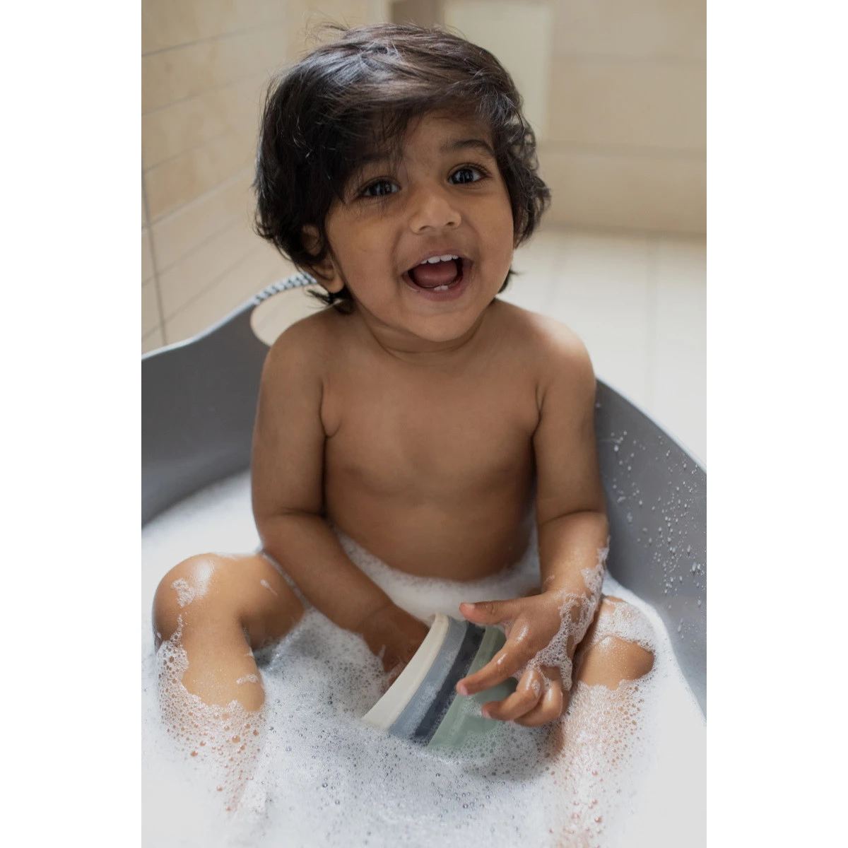 De toren is gemaakt van siliconen waardoor het uitermate geschikt is om mee te spelen in zowel zand als water – perfect om mee te nemen op reis dus! Doordat de toren is voorzien van subtiele patroontjes en gaatjes van verschillende groottes om een ​​douche-effect te creëren heeft jouw kindje genoeg te beleven.