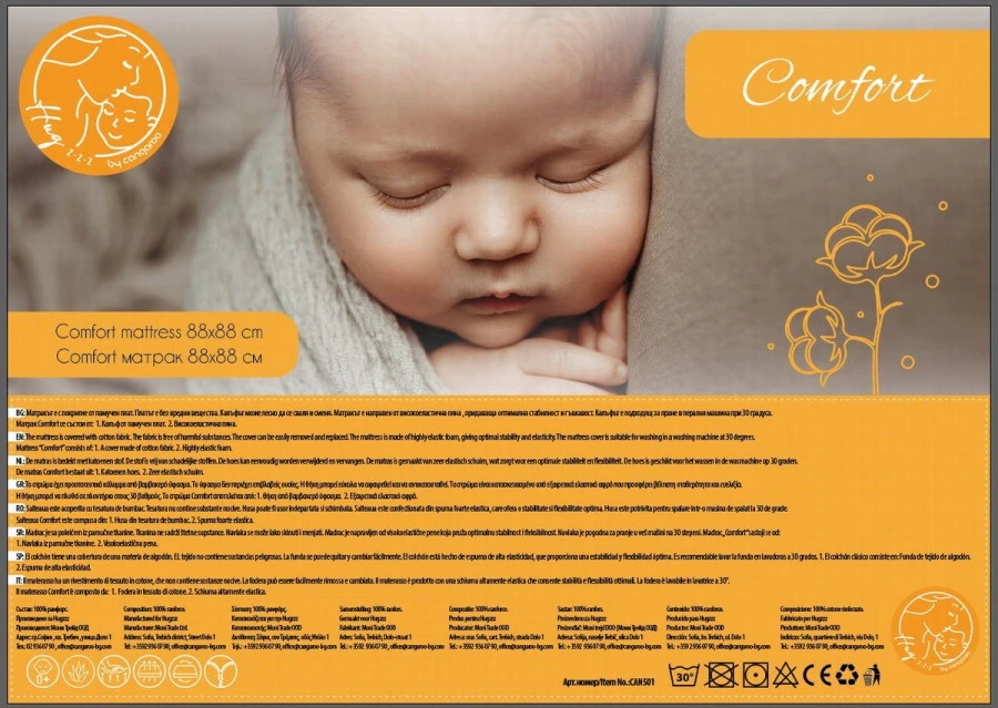 Op het zachte Comfort Boxmatras van Cangaroo zal je kleine heerlijk kunnen slapen. Het matras is gemaakt van stevig schuim en is 5 cm dik, hierdoor ligt het lekker comfortabel.