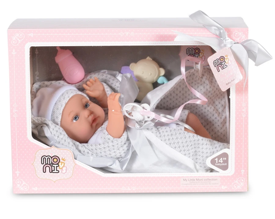 De pop heeft een lief gezichtje met blauwe ogen, ze lijkt net echt! De pop is 36 cm groot en is geschikt voor kindjes vanaf 3 jaar. De mooie verpakking inclusief strik zorgen ervoor dat het een perfect cadeautje is!