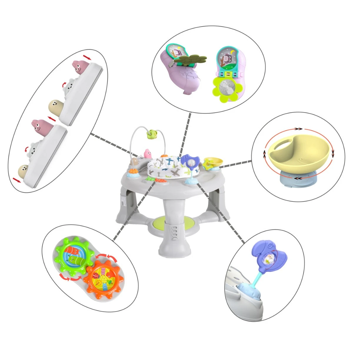 Wat zal jouw kleintje veel speelplezier beleven met dit activity center van Cangaroo. Als je kindje in het zitje zit, kan hij of zij zich 360° draaien en alle verschillende activiteiten ontdekken die rondom deze speeltafel zitten. Zo zitten er draaiende tandwieltjes, een boekje met een spiegeltje, leuke figuurtjes en verschillende beweegbare elementen aan. Midden onder het zitje zit een trampoline voor nog meer speelplezier. Deze trampoline is ook weg te halen. Kort om, je kindje zal zich niet snel vervelen!