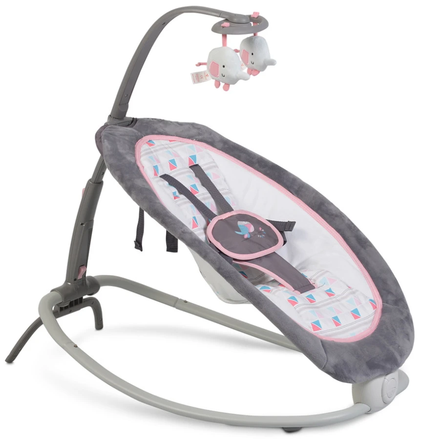 De wipstoel heeft 2 standen: schommelen en stilstaan. Daarnaast is hij in hoogte verstelbaar in 4 verschillende standen. Ook is hij voorzien van een 5-punts veiligheidsgordel, zodat je kindje altijd veilig ligt. Door de speelboog met 2 knuffeltjes heeft je kleine altijd iets leuks om naar te kijken.Â