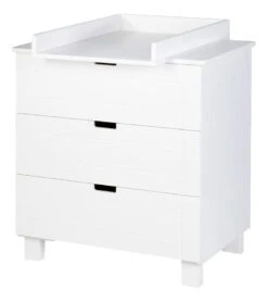 De commode Lieke is een stevige en praktische commode met een strakke witte kleur. De drie handige lades zorgen ervoor dat je altijd alle babyverzorgingsspulletjes makkelijk en dichtbij in de buurt hebt. Het commodeblad is afneembaar zodat je de commode later ook als ladekast kunt gebruiken in de kinderkamer.