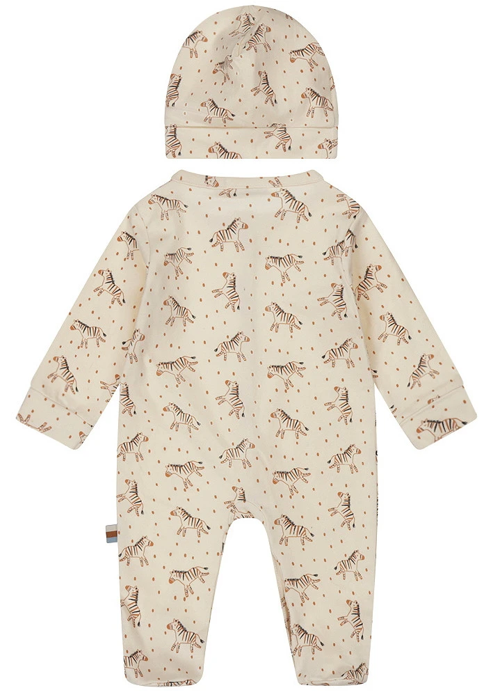 Het pakje is off-white van kleur en heeft een superschattige print met zebra’s. Dankzij de drukkertjes kun je de kleding gemakkelijk aan- en uit doen. De set is gemaakt van comfortabel en flexibel materiaal, zodat je kindje vrij kan bewegen.Â