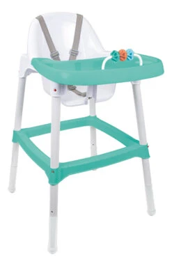 Je kunt je kindje veilig in de stoel vastzetten met het 3-punts veiligheidstuigje. Het stoeltje heeft een ruim afneembaar tafelblad met een leuk rammelaar speeltje en een uitsparing voor een drinkbeker. Door het speeltje aan het blad heeft jouw kindje altijd wat te doen tijdens het wachten op zijn/haar eten. Heeft jouw kleintje geknoeid? Geen probleem! Doordat het blad is gemaakt van kunststof kan hij makkelijk gereinigd worden met een vochtige doek. Tussen de poten zit ook een voetensteuntje voor als je kindje wat groter wordt.