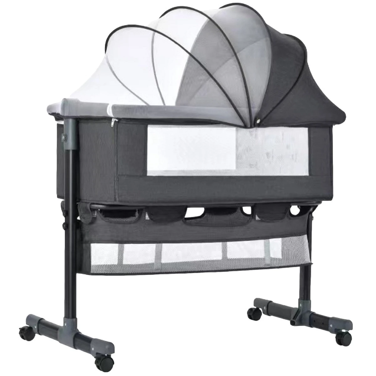 Bovendien is de wieg in 1 klik opvouwbaar en makkelijk te verplaatsen danzij de wieltjes aan de onderkant. Deze kun je op slot zetten wanneer je een geschikte plek hebt gevonden, zodat de wieg niet wegrolt. Daarnaast heeft het wiegje een opbergmand waar je verschillende spulletjes in kan opbergen. Deze multifunctionele Donkergrijze Wieg Aan Bed van Eco Baby is geschikt voor kindjes van 0-24 maanden.Â