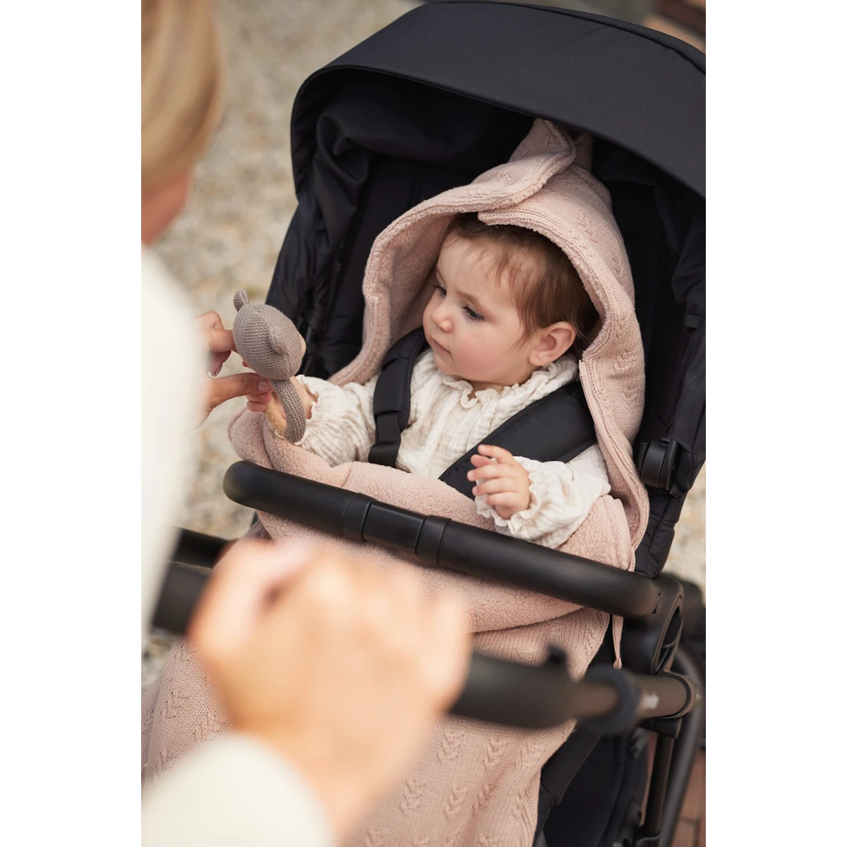 Deze comfortbag komt uit de Grain Knit collectie van Jollein en heeft een gebreid patroontje aan de buitenkant en zachte fleece aan de binnenkant. Daarnaast heeft de voetenzak een capuchon die je kan dicht maken door middel van drukknoopjes. Zo krijgt je kindje het niet koud tijdens de reis.Â