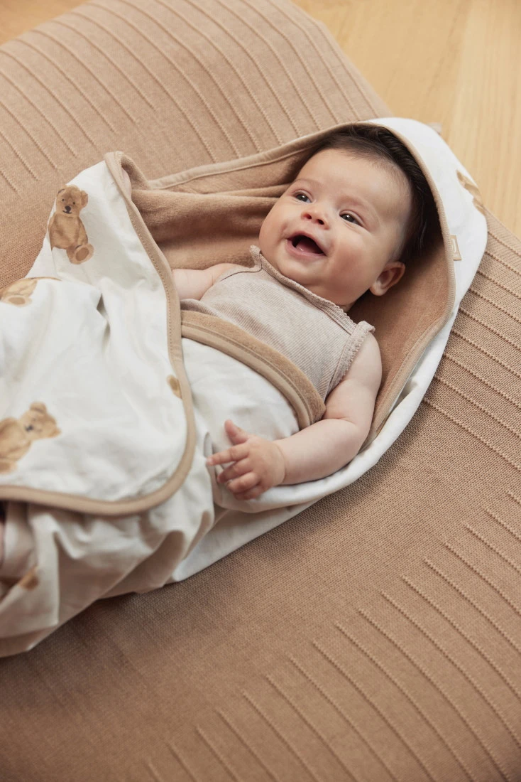 Met deze lekker zachte badcape van Jollein blijft je kleintje goed warm na een lekker badje! De badcape is heerlijk zacht want hij is gemaakt van badstof. De badcape neemt gemakkelijk vocht op, waardoor hij zeer geschikt is om mee te nemen in de zwemtas! Het mooie Teddy Bear design maakt hem nog schattiger.