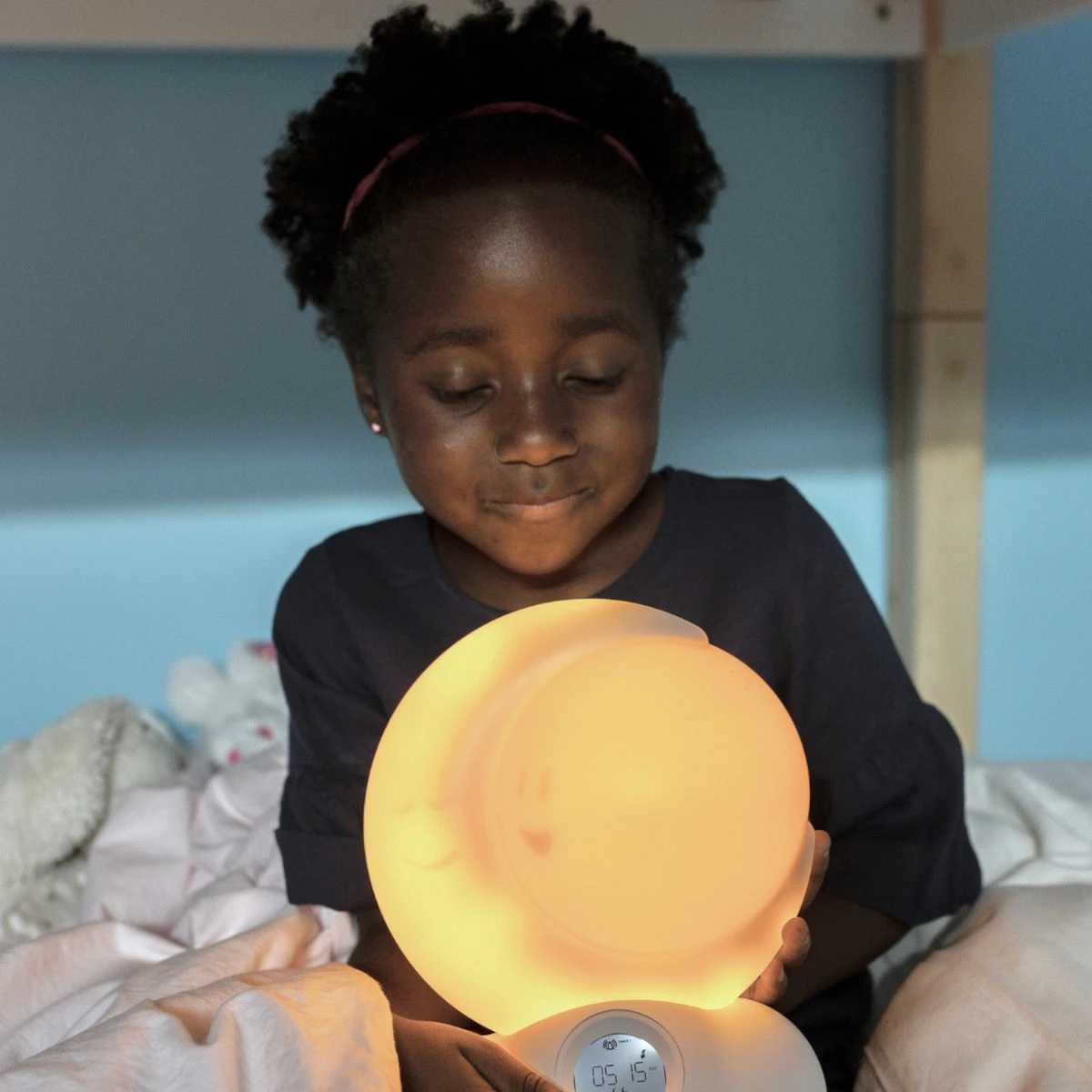 Deze Kidymoon slaaptrainer van Kidywolf is niet alleen schattig, maar vertelt je kindje ook wanneer hij/zij uit bed kan komen. De vrolijke slaaptrainer geeft aan of het tijd is om op te staan door de aanwezigheid van de maan (nacht) of de zon (zonsopgang). De slaaptrainer heeft warm en zacht licht zodat je kindje er ’s nachts niet van wakker wordt.Â
