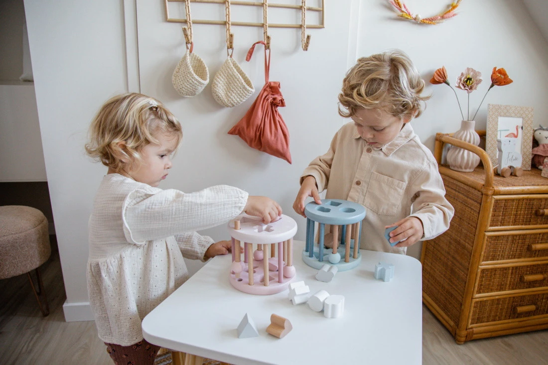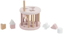 Wat zal je kleintje heerlijk spelen met deze houten vormenstoof van Label Label! De vormenstoof heeft verschillende openingen waar de 6 vormpjes in geduwd moeten worden. De vormpjes hebben ook een leuk figuurtje. Daarnaast is de vormenstoof rond en kan hij over de grond rollen! Extra leuk en uitdagend wanneer je kindje net kan kruipen.