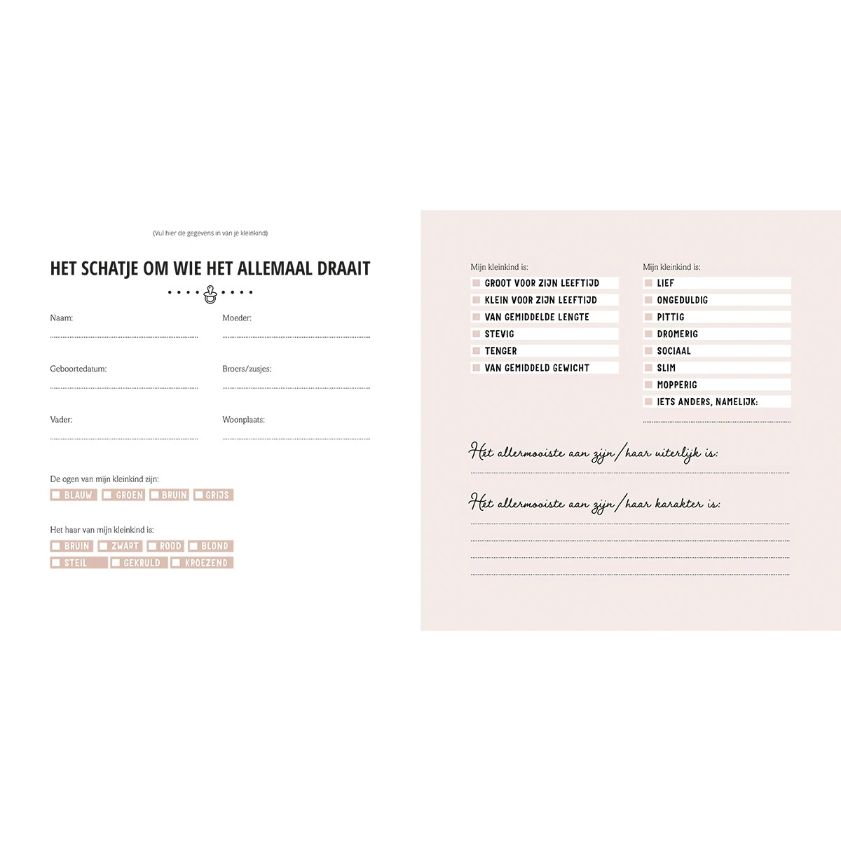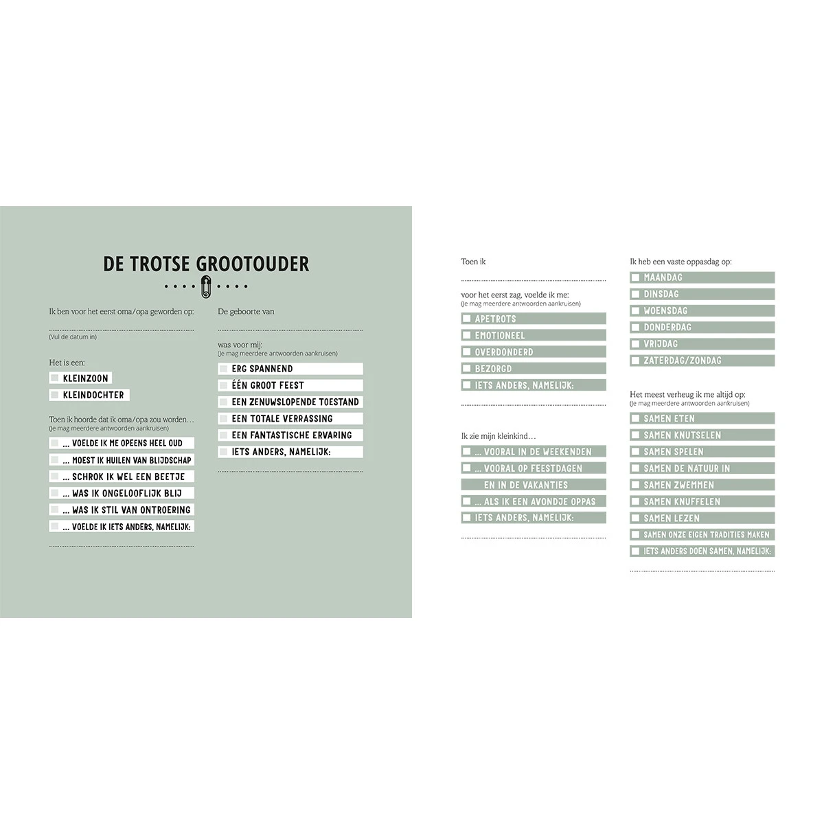 Wat een leuk invulboek van Lantaarn! In dit hippe ‘Speciaal Voor Mijn Kleinkind’ boek kan opa of oma alles vastleggen van hun tijd samen met het kleinkind. Leuke verhalen over uitstapjes, foto’s en nog veel meer.