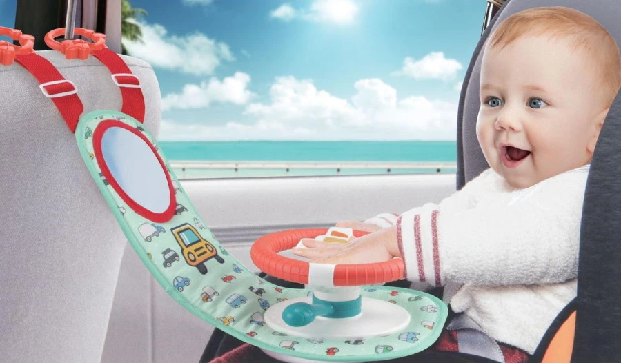 Het muzikale speelstuur heeft twee ringen waarmee je het speelgoed in de auto kan bevestigen aan de hoofdsteun. Dankzij de verstelbare gespjes kun je het speelgoed stuurtje op de juiste hoogte voor jouw kleine hangen, zo is je kindje klaar om net als papa of mama het stuur in handen te nemen!