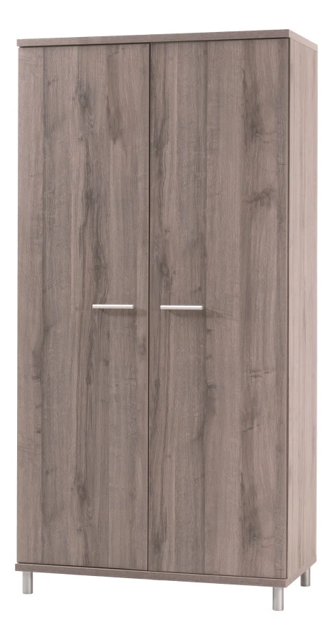 2-Deurskast Naomi past perfect in iedere baby- of kinderkamer. Deze mooie kast biedt genoeg ruimte om de kleding van je kleine in op te bergen. De kast is gemaakt van hoogwaardig plaatmateriaal met melamine en is dus ook zeer stevig. Deze kast heeft 2 openslaande deuren van grijs houtlook met zilveren grepen. De binnenkant bestaat uit een groot hanggedeelte en een aantal planken.