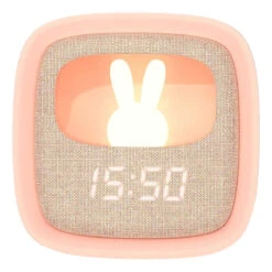 De wekker is tevens voorzien van een superschattig nachtlampje in de vorm van een lief, klein konijntje. De wekker is voorzien van een oplaadbare accu (micro USB, 5V) waarmee je tot 14 uur lang voorzien bent van de juiste tijd en een kalmerend lampje. Voldoende tijd dus voor de langste dutjes!