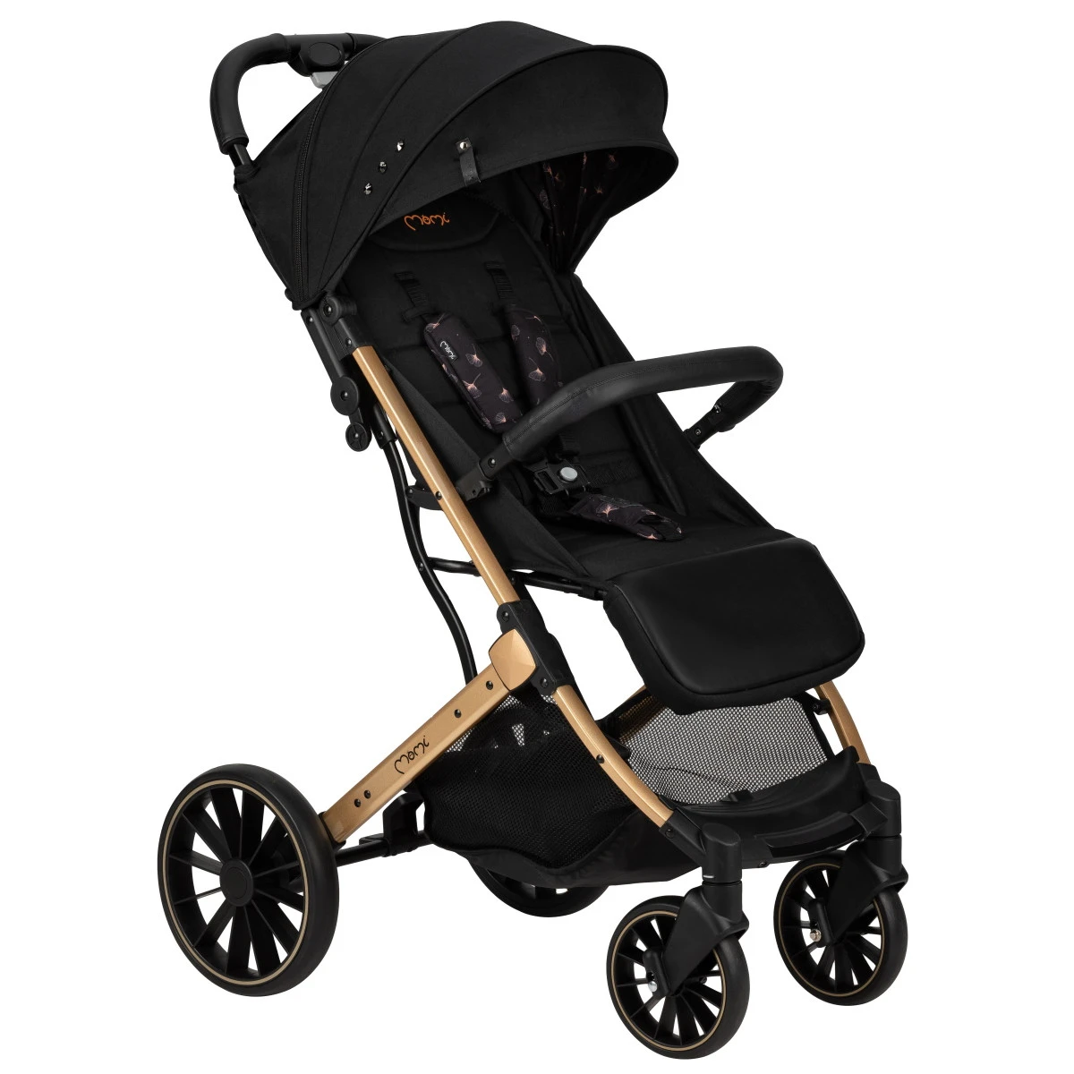De wagen is voorzien van een ruime zonnekap met mooi design die je kindje beschermd tegen verschillende weersomstandigheden. De kap heeft een kijkluikje, zodat je je kindje altijd kunt zien. Dankzij de 5-punts veiligheidsgordel en de valbeugel zit je kindje altijd veilig in de wagen. De handvaten zijn tevens stijlvol afgewerkt met eco-leer. Ook heeft de wagen een ruime boodschappenmand waar je de nodige spulletjes in op kunt bergen.Â