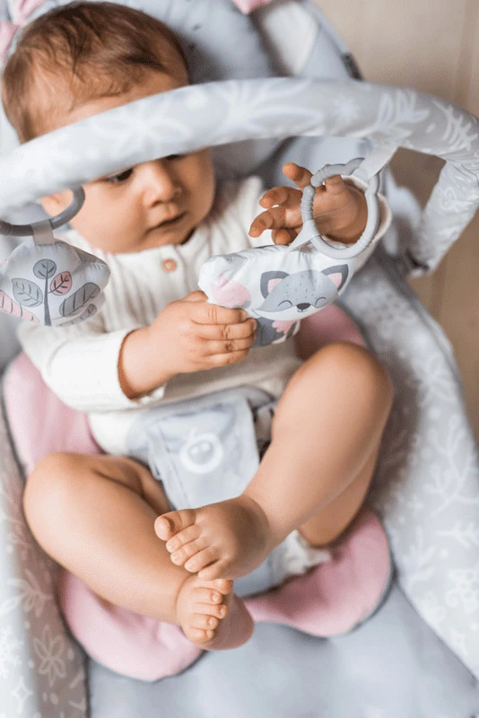 Je kleintje zal heerlijk in slaap vallen in de Momi Luis Grey Bouncer Wipstoel. Laat je kindje rustig spelen en in slaap vallen terwijl jij iets anders doet. Je kindje zit veilig dankzij het 3-punts veiligheidstuigje en voor de allerkleinsten zijn er twee vrolijke zitverkleiners in de vorm van een schattig vosje.