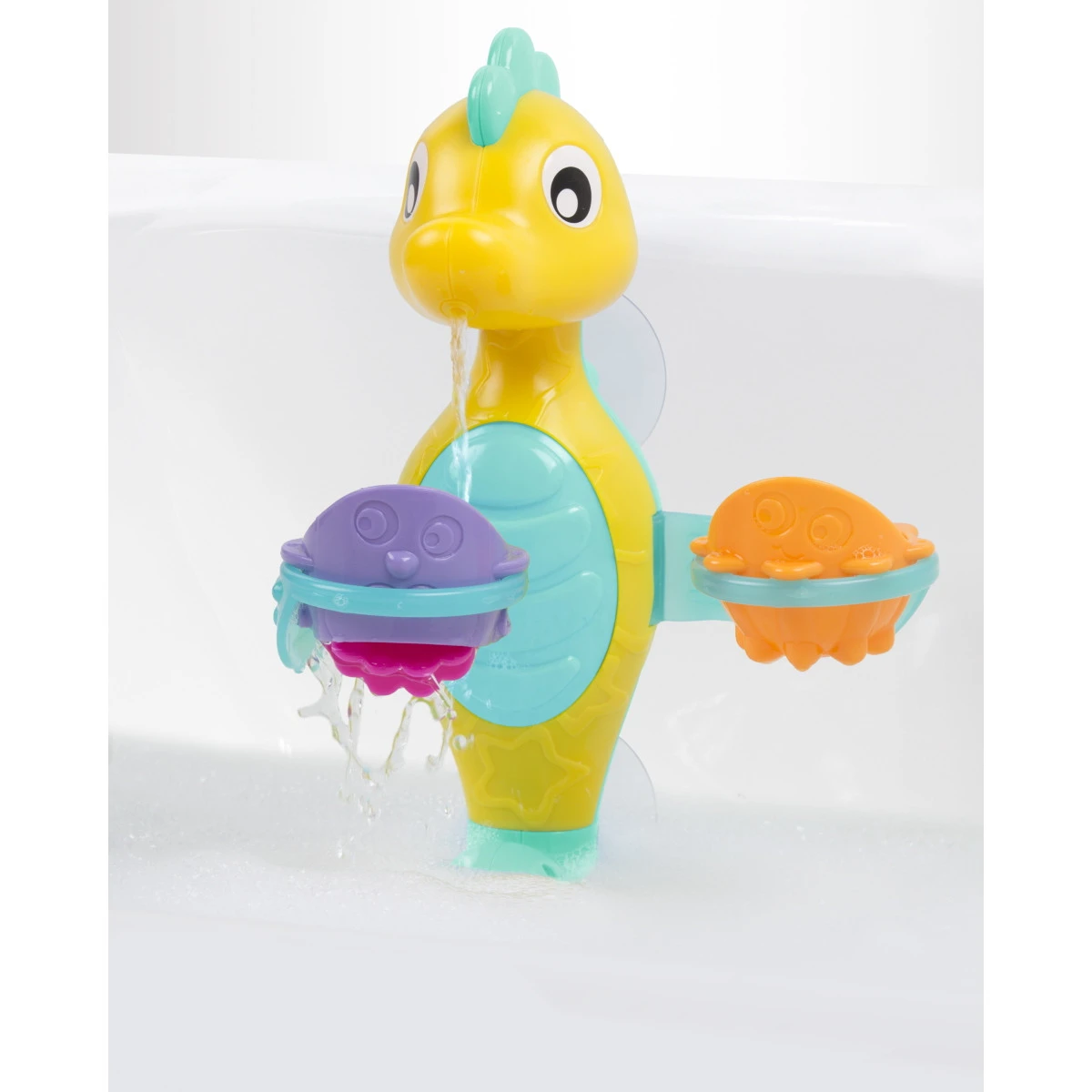 Ontdek een wereld vol waterpret met de Fountains of Fun Fontein van Playgro! Druk op het buikje van het zeepaardje en zie hoe het water uit de mond stroomt en langs de armen loopt, waardoor de propellers in de vrolijke badvriendjes gaan ronddraaien. Je kindje kan de badvriendjes ook uit de armen van het zeepaardje halen en er los mee spelen!