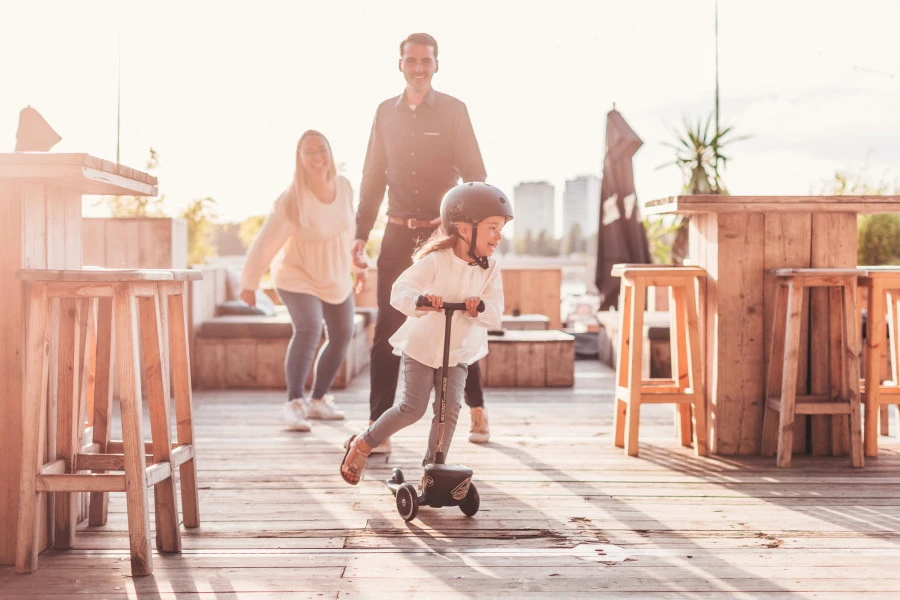 Je kleine zal op deze step zijn/haar evenwicht niet gauw verliezen: de step heeft namelijk 2 voorwielen waardoor deze altijd stevig staat. Ook is de step uitgerust met grote, schokabsorberende wielen voor een fantastische wegligging.