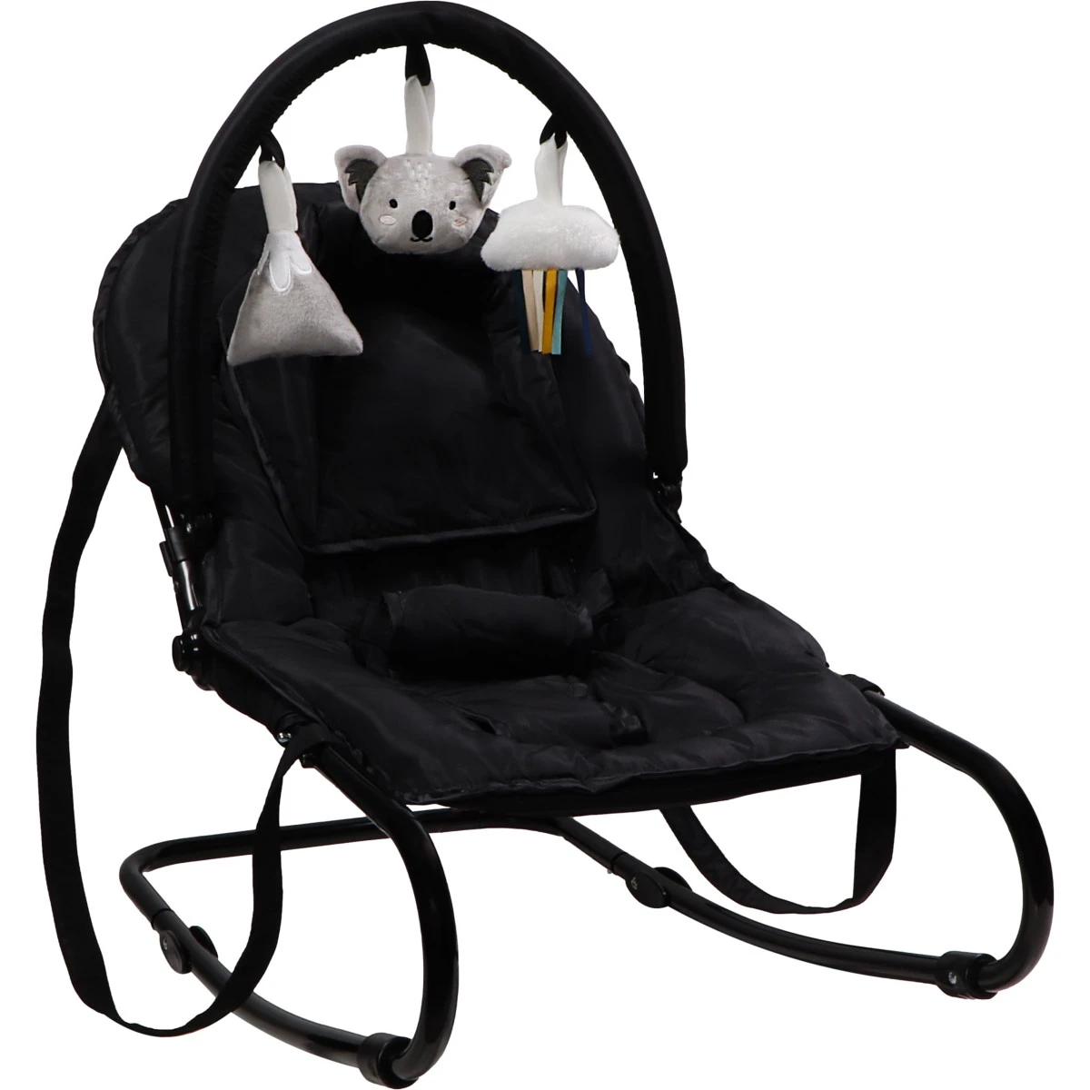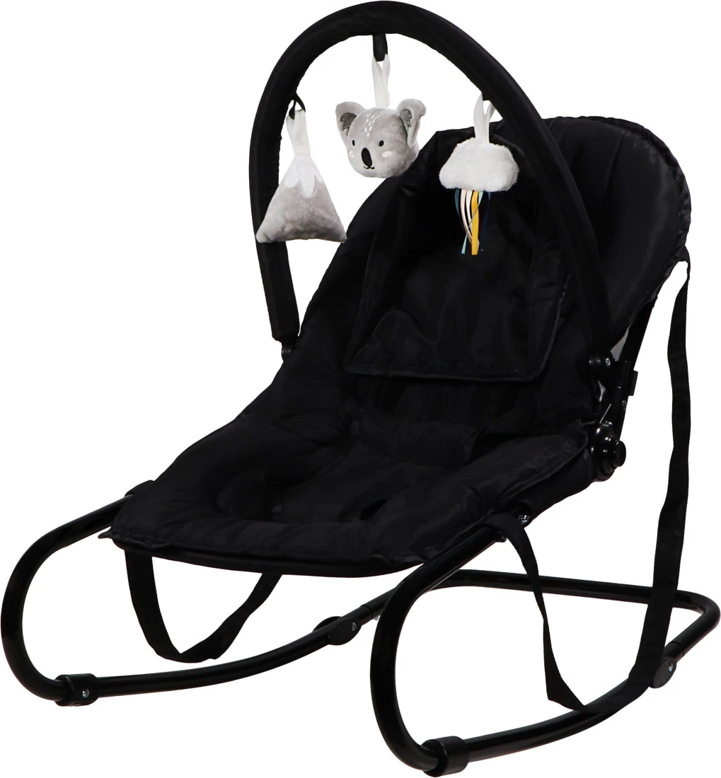 Je kindje hoeft zich niet te vervelen in de wipstoel, hij heeft namelijk een vrolijke (afneembare) speelboog met drie leuke speeltjes en Koala Kyle in de hoofdrol! De wipstoel heeft een schommelfunctie maar ook twee haakjes waarmee je hem vast kunt zetten, handig als je bijvoorbeeld je kindje eten wil geven in de stoel. De bouncer kun je gemakkelijk verplaatsen of meenemen dankzij de twee handvaten.Â