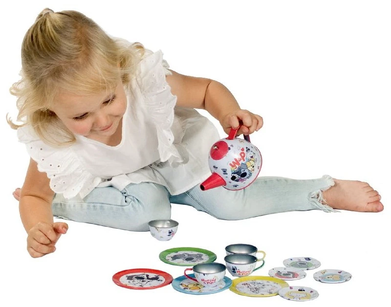 Wat zal je kindje heerlijk spelen met dit Woezel & Pip Tinnen Theeservies! Met deze leuke set kan je kindje zijn of haar fantasie de vrije loop laten en eindeloos veel speelplezier beleven.