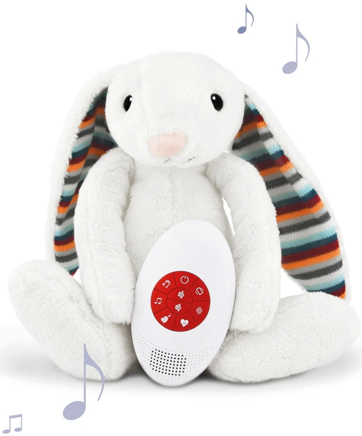 Het lieve konijntje zal je kleintje daarnaast automatisch gerust stellen wanneer hij of zij huilt, want dan schakelt Bibi zichzelf automatisch in. Wel zo makkelijk! Het afspelen van de geluidjes kan ook eenvoudig gestart worden door het knuffelvriendje even te schudden. De geluidjes en muziekjes zullen na 10 minuten automatisch stoppen met afspelen.Â